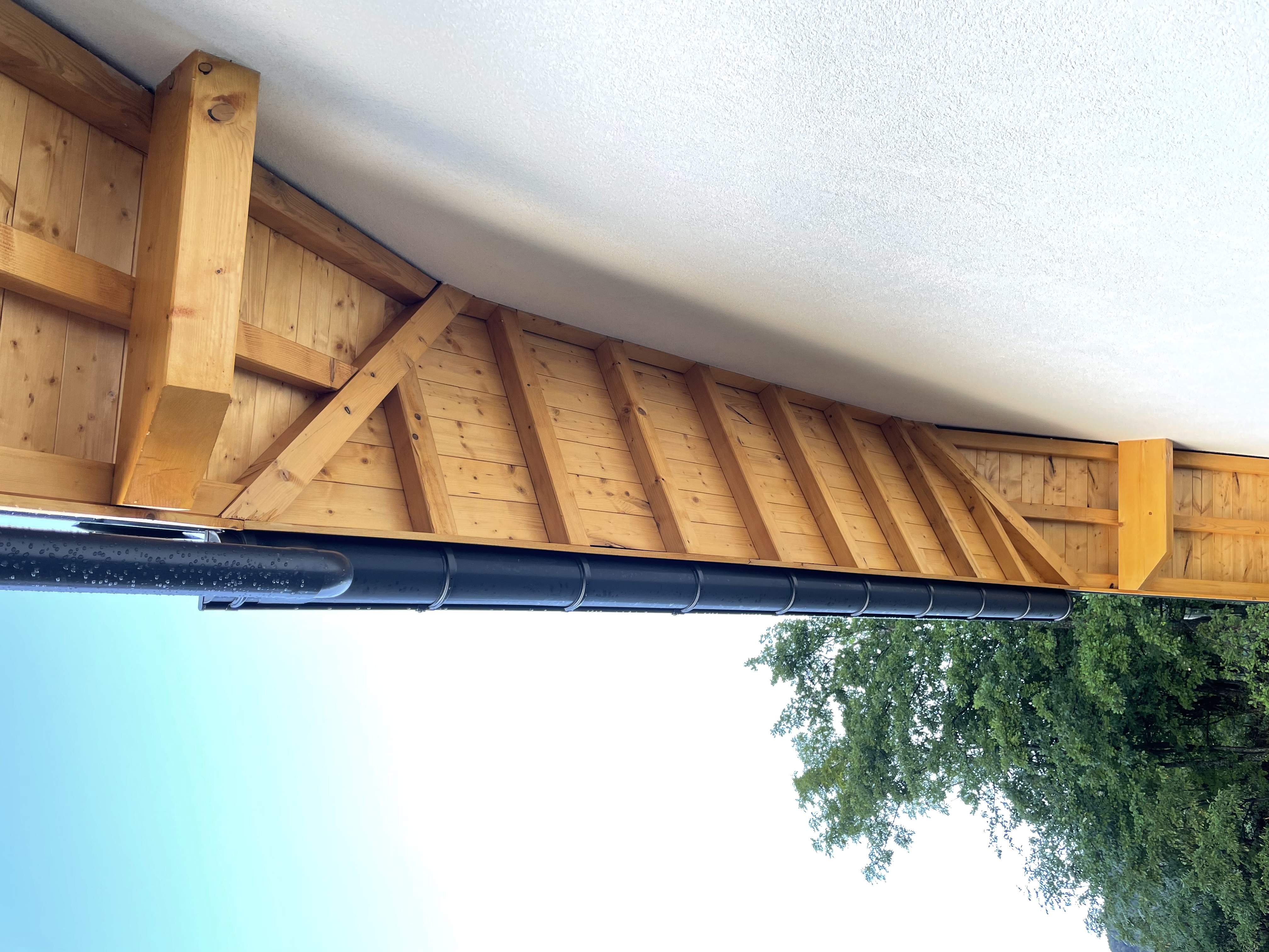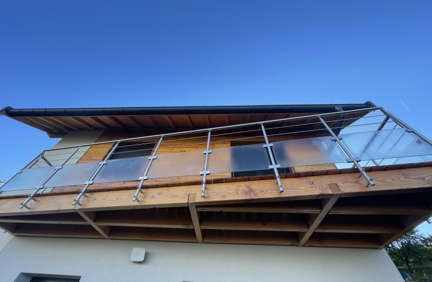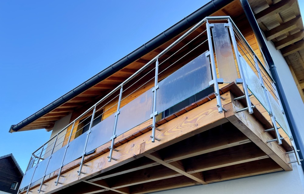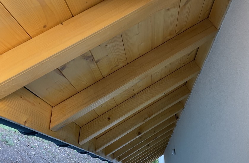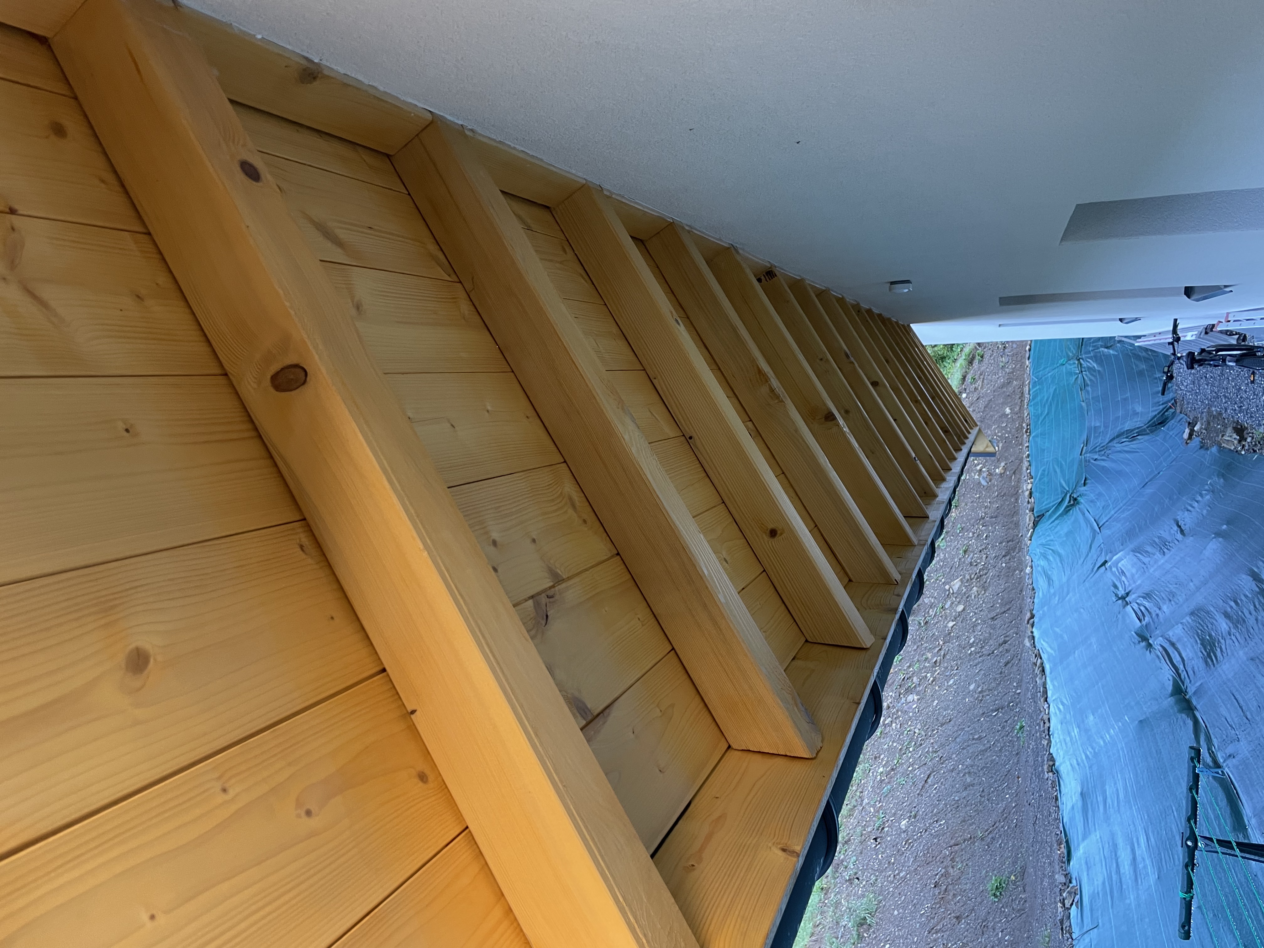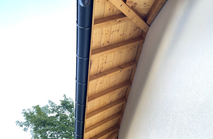 La charpente de la maison, réalisée en lamellé-collé d'épicéa, offre une solidité exceptionnelle et permet de grandes ouvertures, créant des espaces intérieurs lumineux et aérés. Nous avons utilisé du sapin et du mélèze certifiés "Bois des Alpes", garantissant une qualité supérieure tout en soutenant l'économie locale.